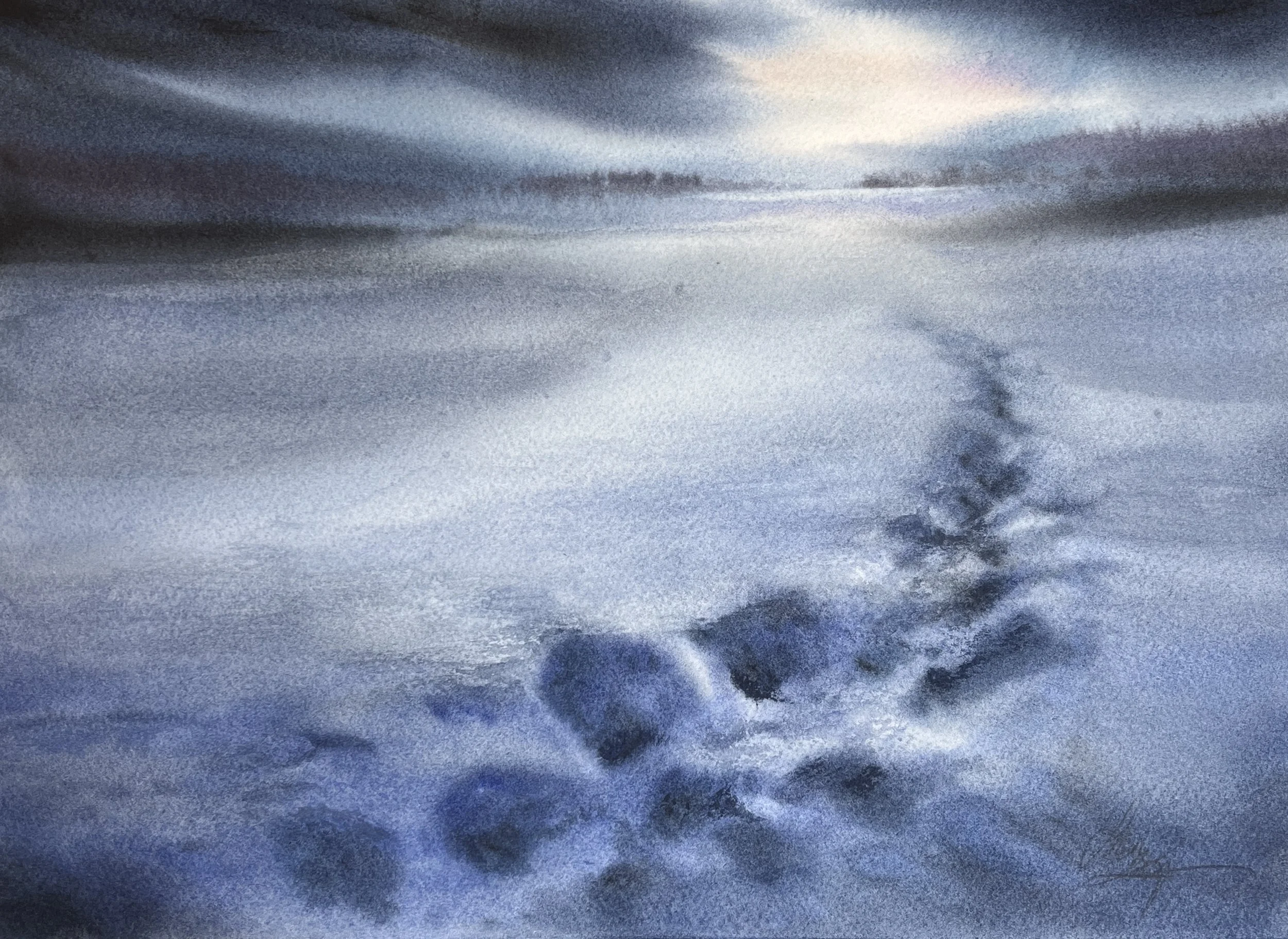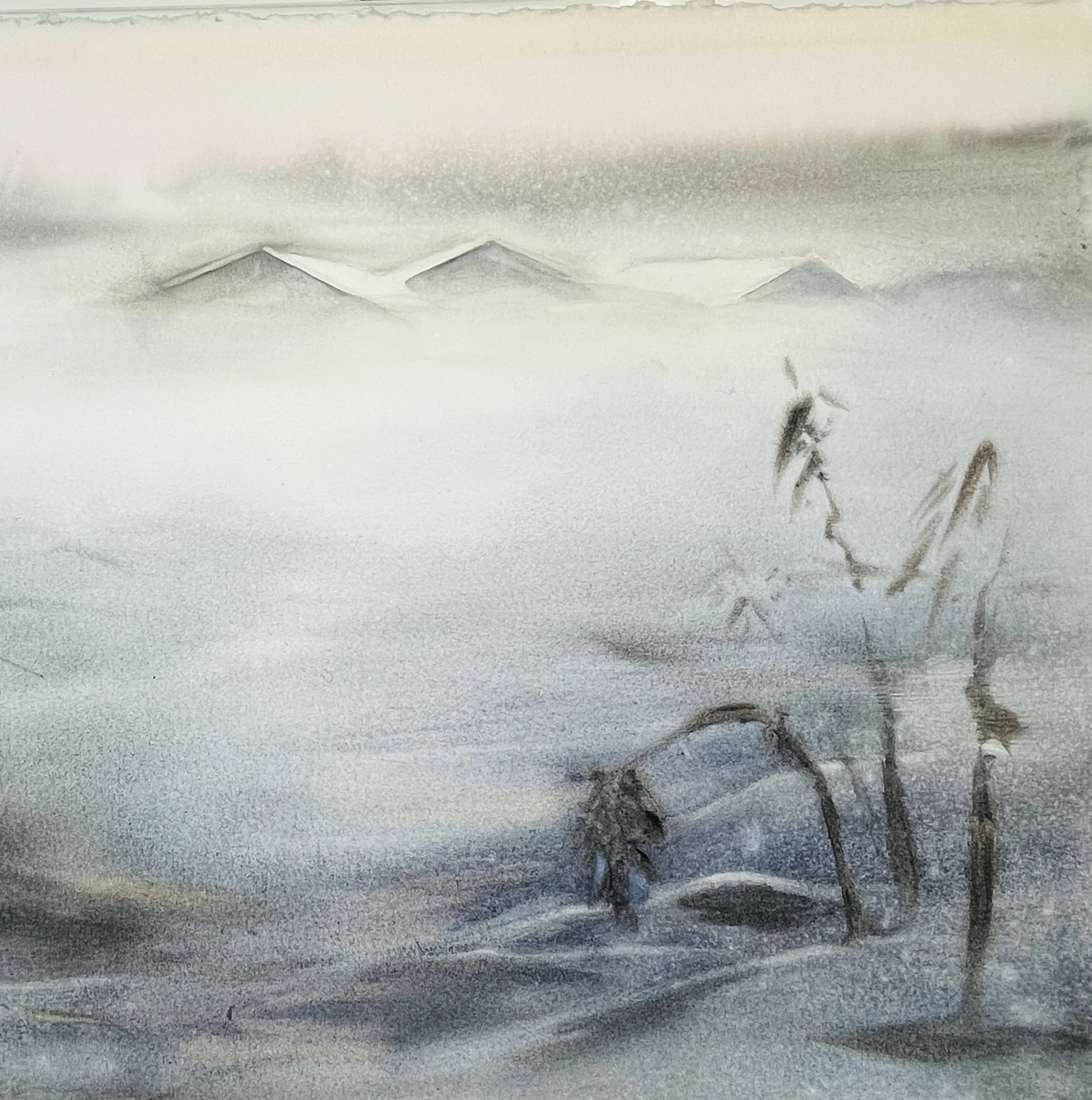 Damit ist eigentlich schon alles gesagt. Anfang Dezember schneite es so viel. Es war für mich ein Fest. Ich mag den Schnee. Man kann ihn ‘hören’. Die Landschaft ist in Watte gepackt, die Geräusche gedämpft, die Farben sind gemindert . Es entstehen Ansichten, die auf das Wesentliche reduziert sind. Was für ein Fest für die Augen! Natürlich habe ich sehr viel gemalt, sehr viel ausprobiert, experimentiert und es wird noch weiter gehen.
