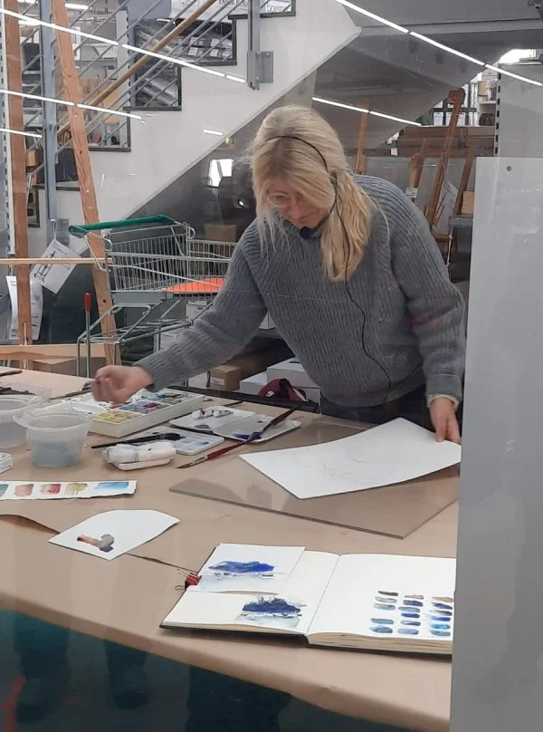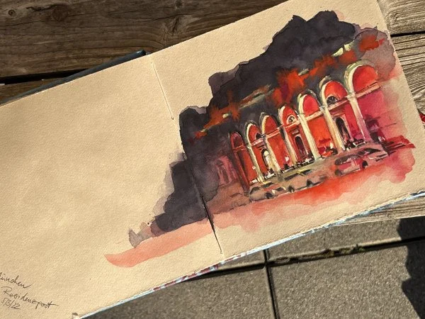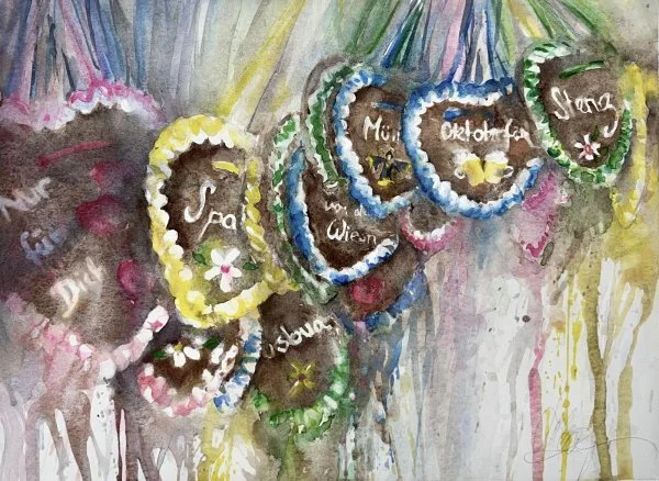 Im Herbst, im September geht es wieder los mit den regelmäßigen Malgruppen im Atelier, hinzu kommen diverse Workshops. Die Sommerpause ist vorbei. Alle freuen sich, dass in meinem Atelier wieder was los ist. Außerdem fand dieses Jahr endlich wieder das Oktoberfest statt. Ich bin kein Fan von überfüllten Bierzelten mit Partymusik. Was ich aber sehr mag, ist es untertags über die Wiesn zu schlendern, mir die Menschen anzuschauen, diese Leichtigkeit aufzunehmen, mich mit Freunden dort zu treffen. Da ist München einfach auch Dorf - Millionendorf.Ende September ging es dann nach Bilbao. Dort fand das 25. Symposium der Europäischen Aquarellgesellschaften statt. Es wird jedes Jahr von einer anderen Aquarellgesellschaft ausgerichtet. Mit Vorführungen, Challenges und natürlich jeder Menge Austausch unter den Teilnehmern.Dieser Herbst war denn auch wieder so intensiv, voll mit Terminen, wie vor der Pandemiezeit. Im November fand wieder der Weihnachtsmarkt auf Schloss Kronburg statt. Dort trifft man mich seit 15 Jahren und auch dieses Mal haben sich tolle neue Kontakte ergeben. Viele Bilder haben ein neues zu Hause gefunden und ich kann dann die nächsten Monate davon zehren und in meinem Atelier einheizen. Danke!