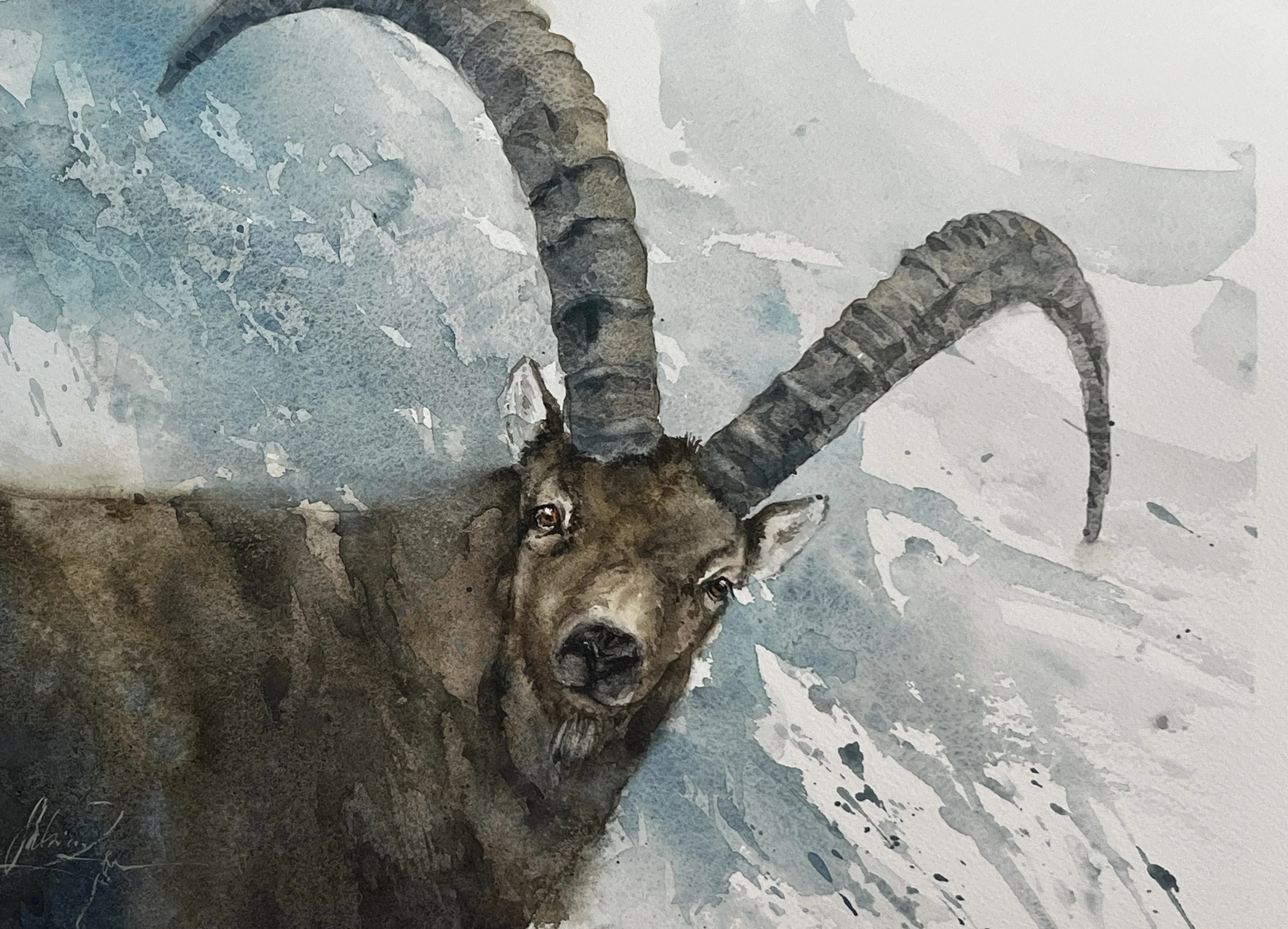 Das Weiß im (Tier)Aquarell - der Steinbock