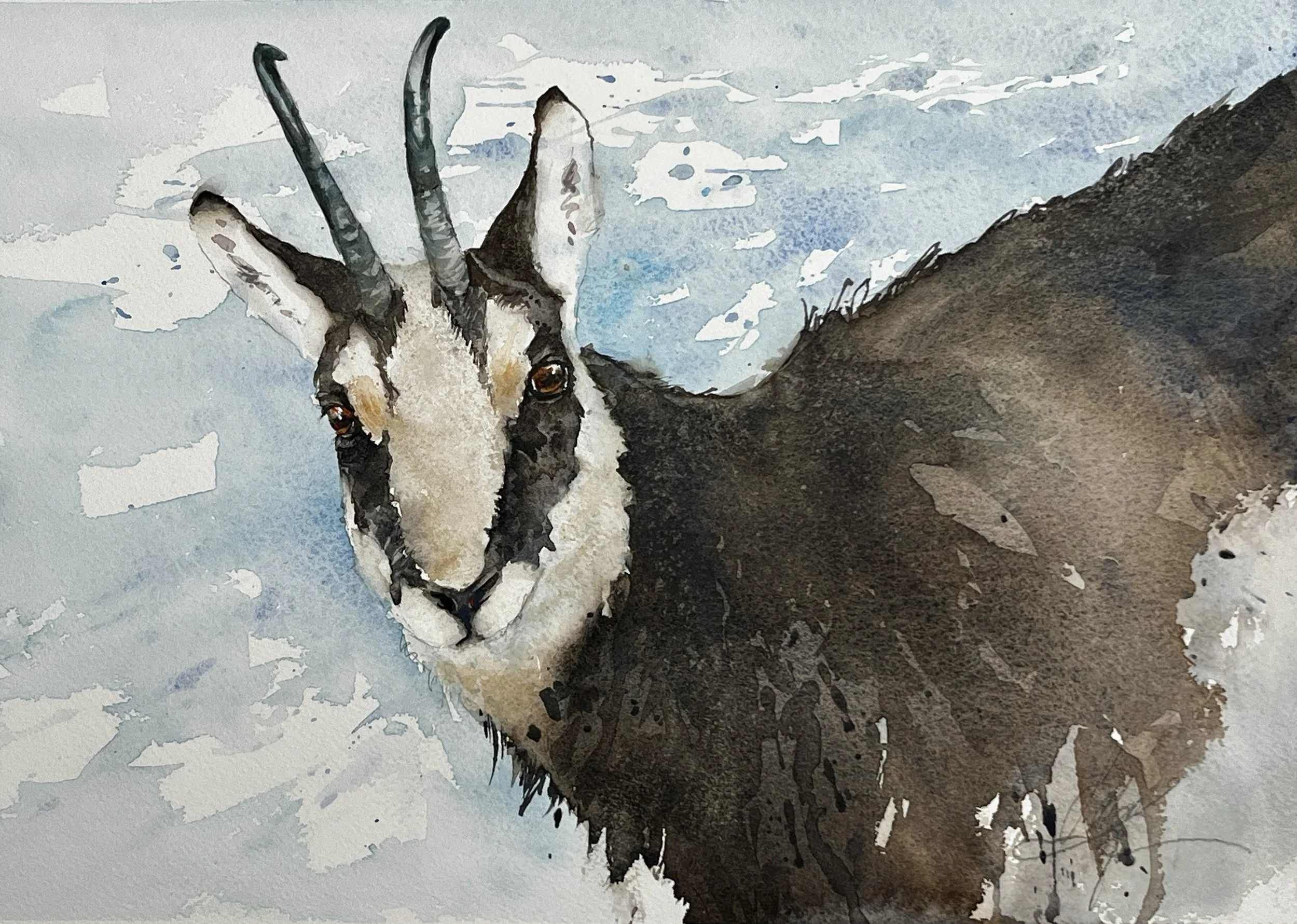 Das Weiß im (Tier)Aquarell) - die Gemse