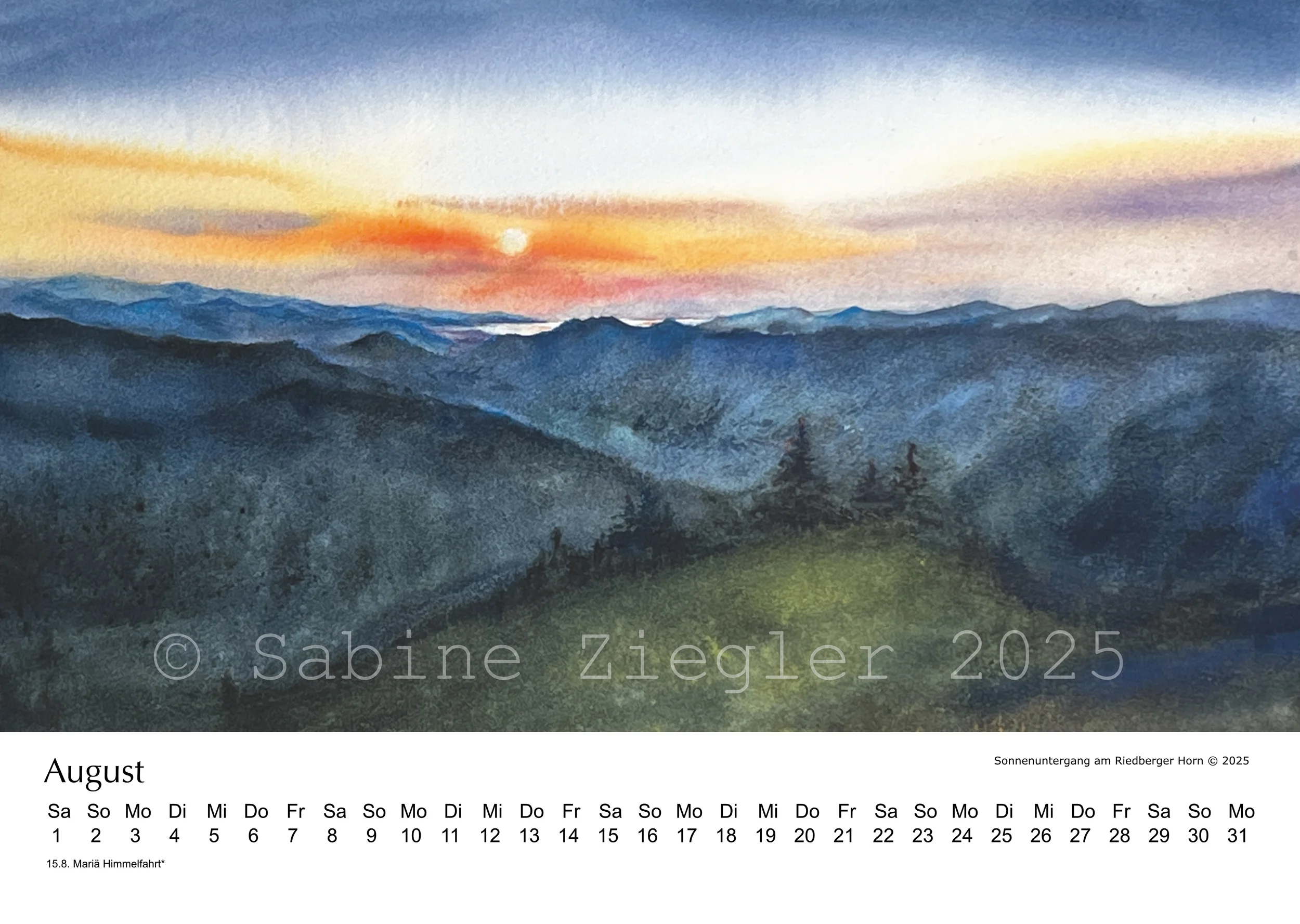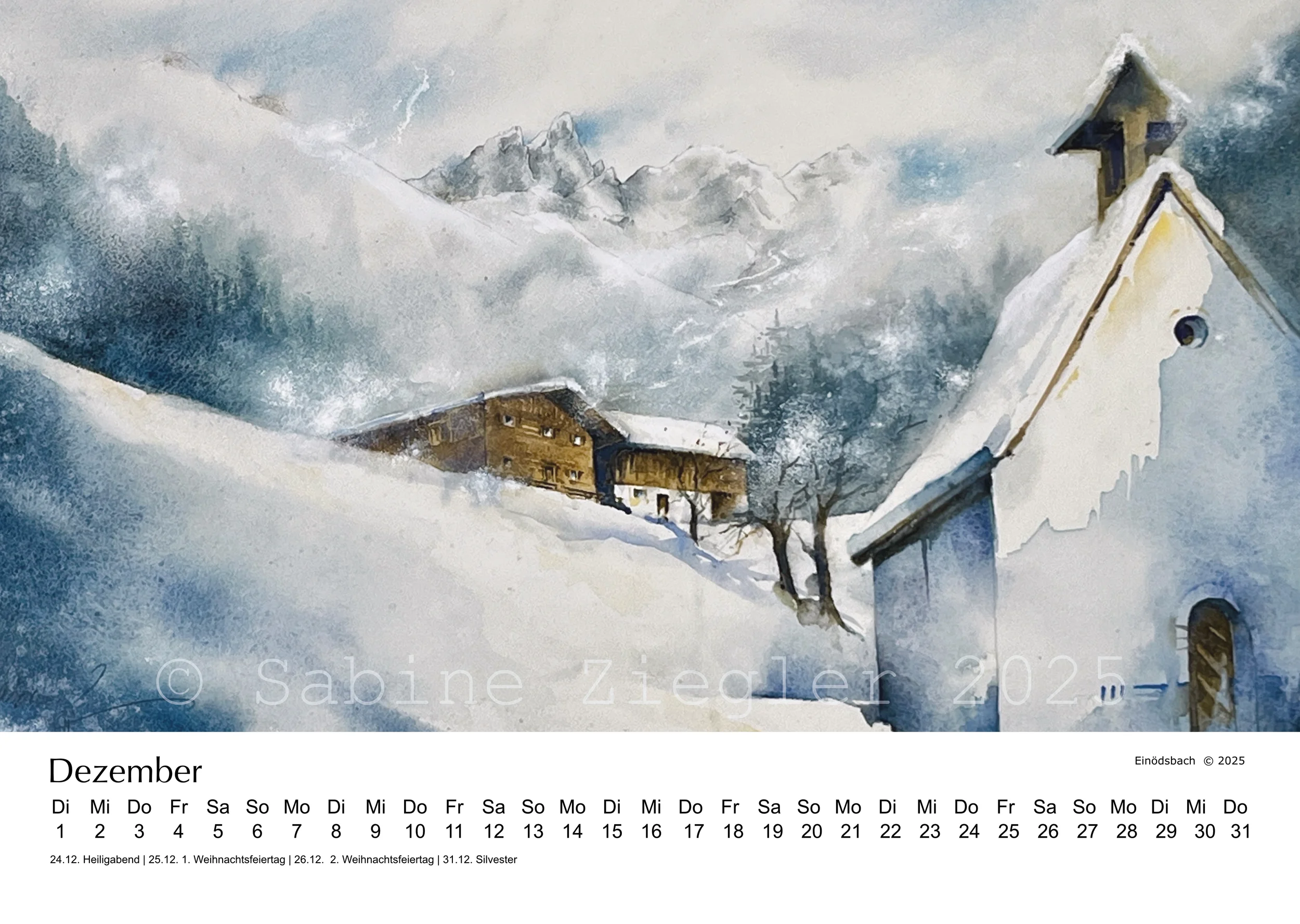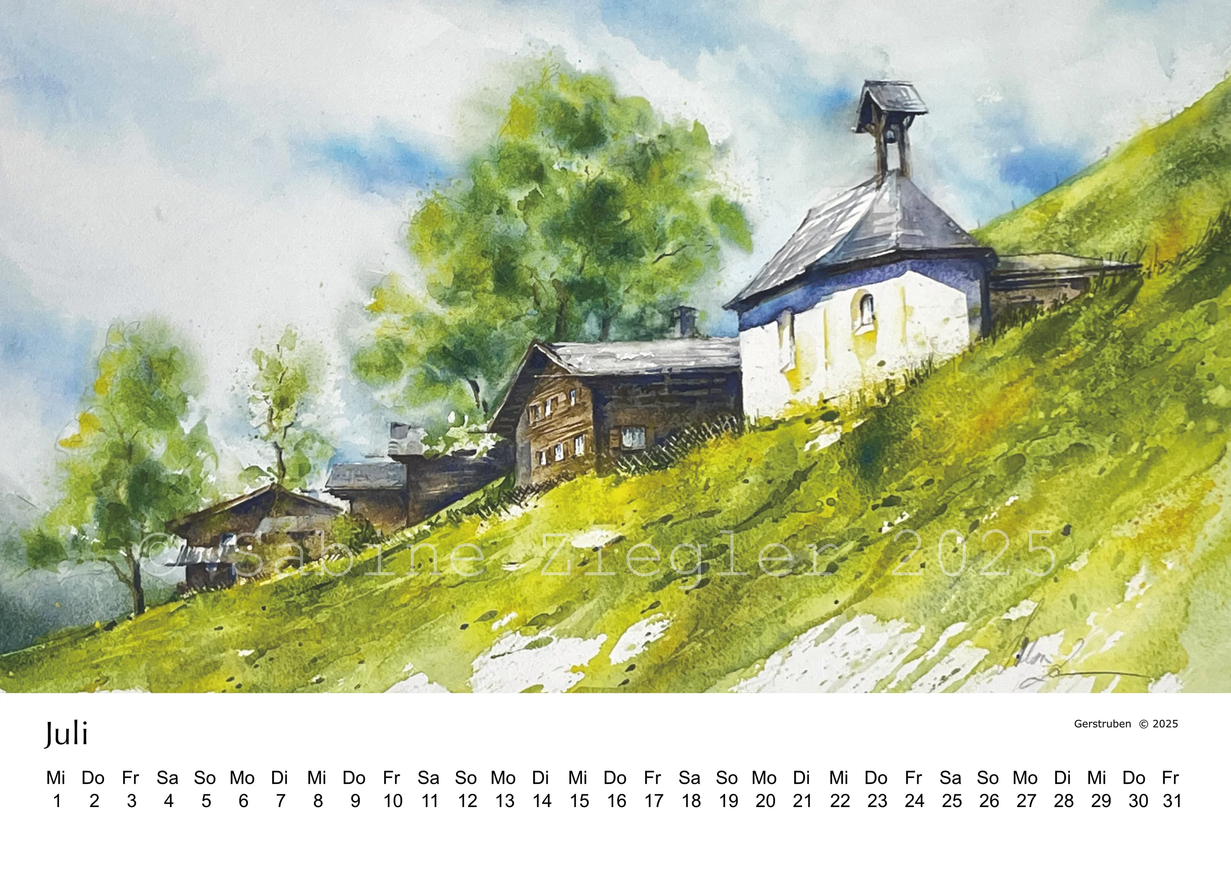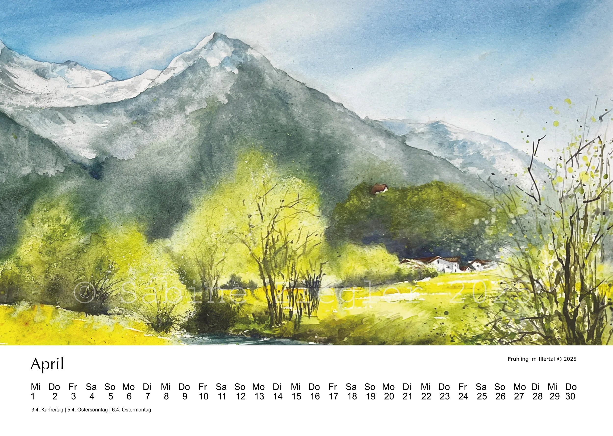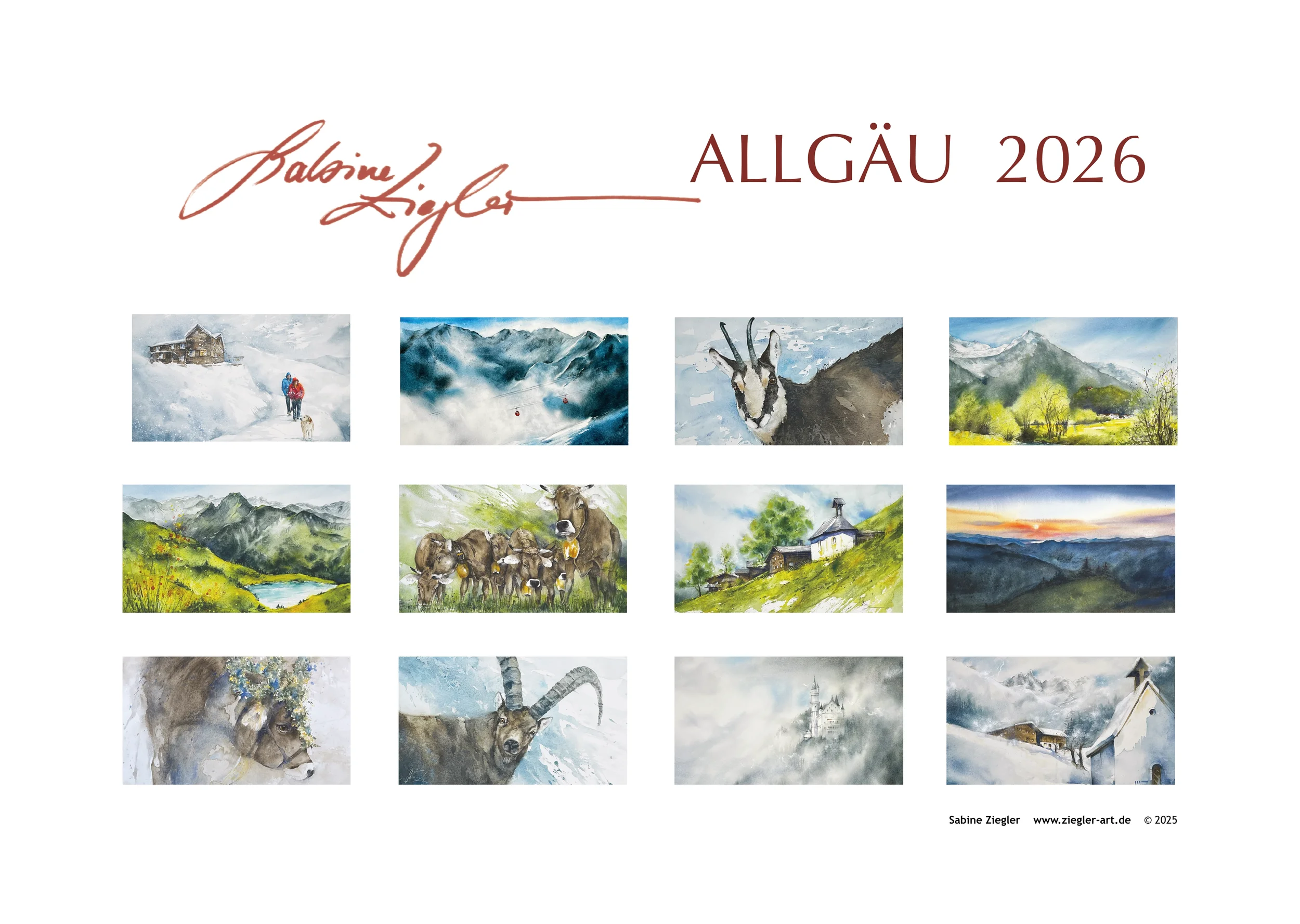 Ein nicht ganz gewöhnlicher Kalender mit 12 Impressionen aus dem Allgäu in Aquarell